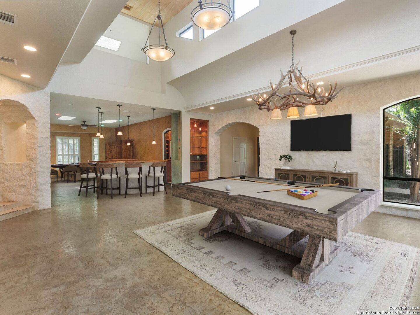 Discover a 6 bedroom home that lives like a private resort in the heart of San Antonio just 12 minutes from the San Antonio International Airport. The oak trees are lighted and the property is in a gated enclave of 11 estates in Hill Country Village. Enjoy a 72,000 gallon salt water 12 foot deep pool, spa, tennis court (could be pickle ball) and fenced gardens on manicured grounds where a large tortoise lived happily, koi pond and two gated pet yards. The screened in lanai off the utility room downstairs is a lovely place to enjoy your morning tea. The stately home is over 8,000 sq ft accentuated with three fireplaces, multiple living, dining and entertaining spaces plus bonus rooms for a variety of lifestyle needs. Hire the band, bring in the bartenders and open the dance floor in the light filled vaulted ceiling 22' x 26' entertainment room. A chef's kitchen is ready for your next holiday Chile Party. Built in 3' x 6' closet safe. The guest suite with full bath has a separate exterior door to private entry. Upstairs is a large play room/study/office with a .5 bath and a outside patio nestled in the tree tops. Two car garage and covered carport at the home plus a large four car detached garage at the back of the property. It is quiet and peaceful - just like a Texas hill country retreat. The Pearl District is 12 miles and the Alamo in the center of downtown is 14 miles.